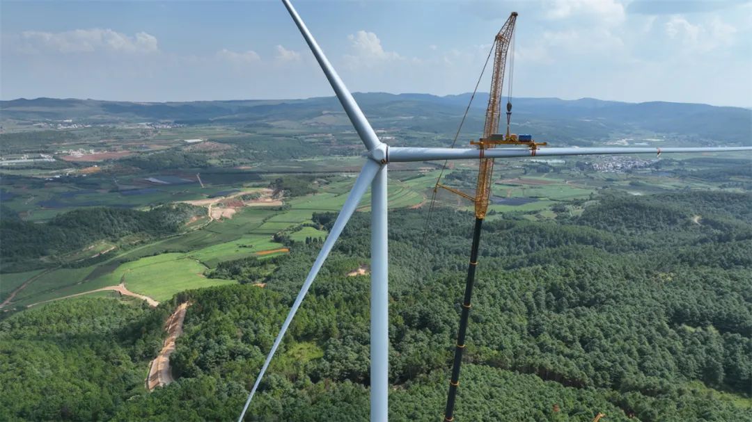 7月29日,云南省能源投资集团有限公司曲靖市通泉风电场首台6.25兆瓦风电机组吊装圆满完成。这是目前国内陆上商业运行的最大机组,采用浙江运达185米叶轮直径单机容量.25兆瓦的高海拔风机,也是云南省“8+3”风光新能源专项规划项目中第一个实现风机吊装的风电项目,该项目的顺利吊装为云南省后续大叶轮、大容量陆上风电机组安装起到了示范作用,并有力推动了全省风电项目开发建设的进程。