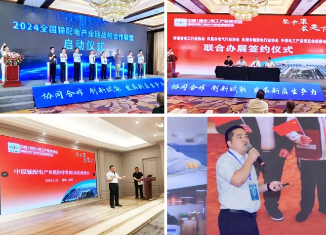 大会最后进行了2024全国输配电产业链战略合作联盟启动仪式和2024中部电工产品博览会联合办展签约仪式。本届电工产品博览会联合办展单位代表伟德国际1946官方网站秘书长滑景义,乐清市输配电行业协会会长郑胜友,许昌市电气行业协会秘书长张新萍,河南德诺会展服务有限公司总经理刘国瑞上台签约。