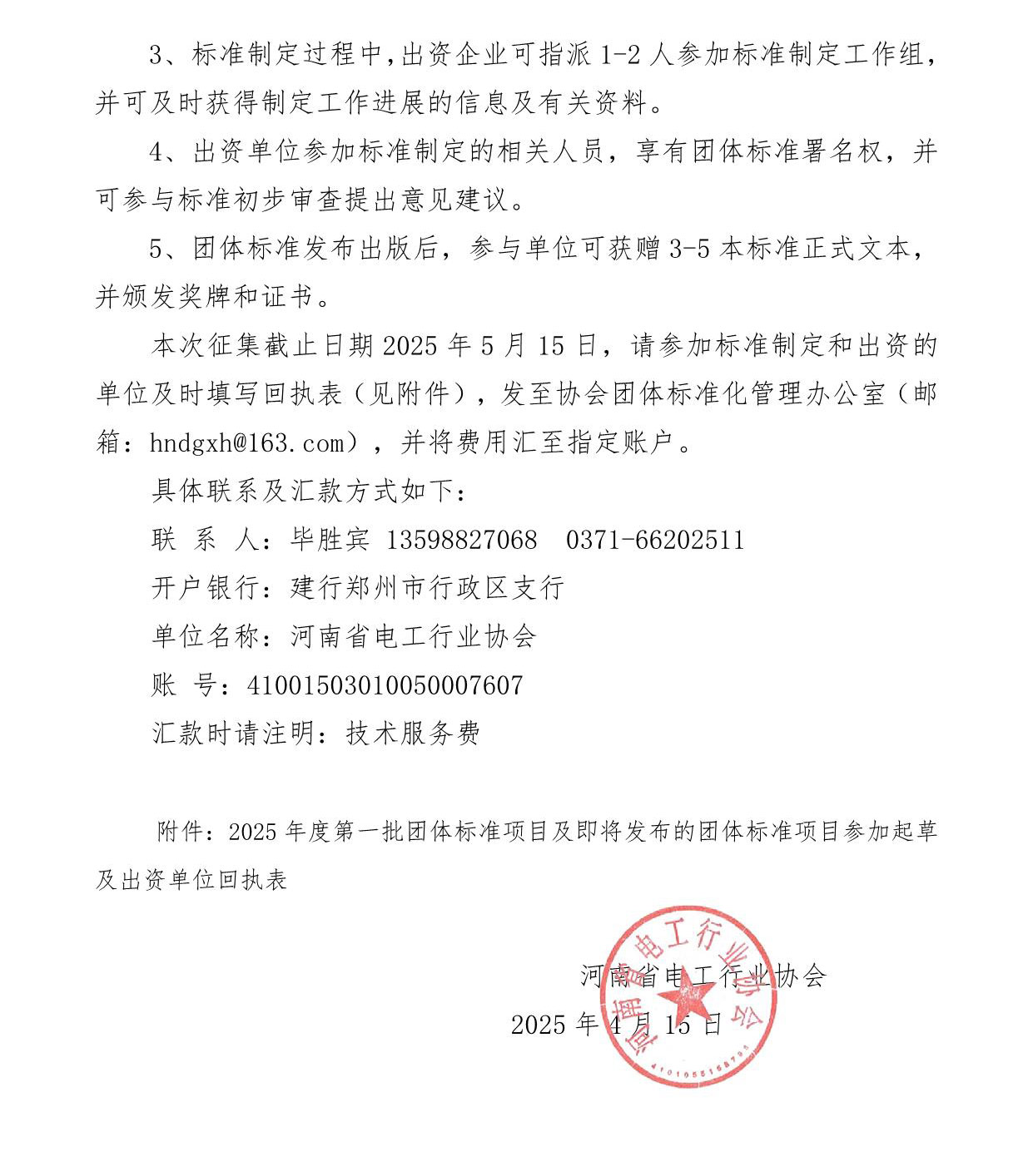 关于征集2025年度第一批团体标准项目参加单位的通知