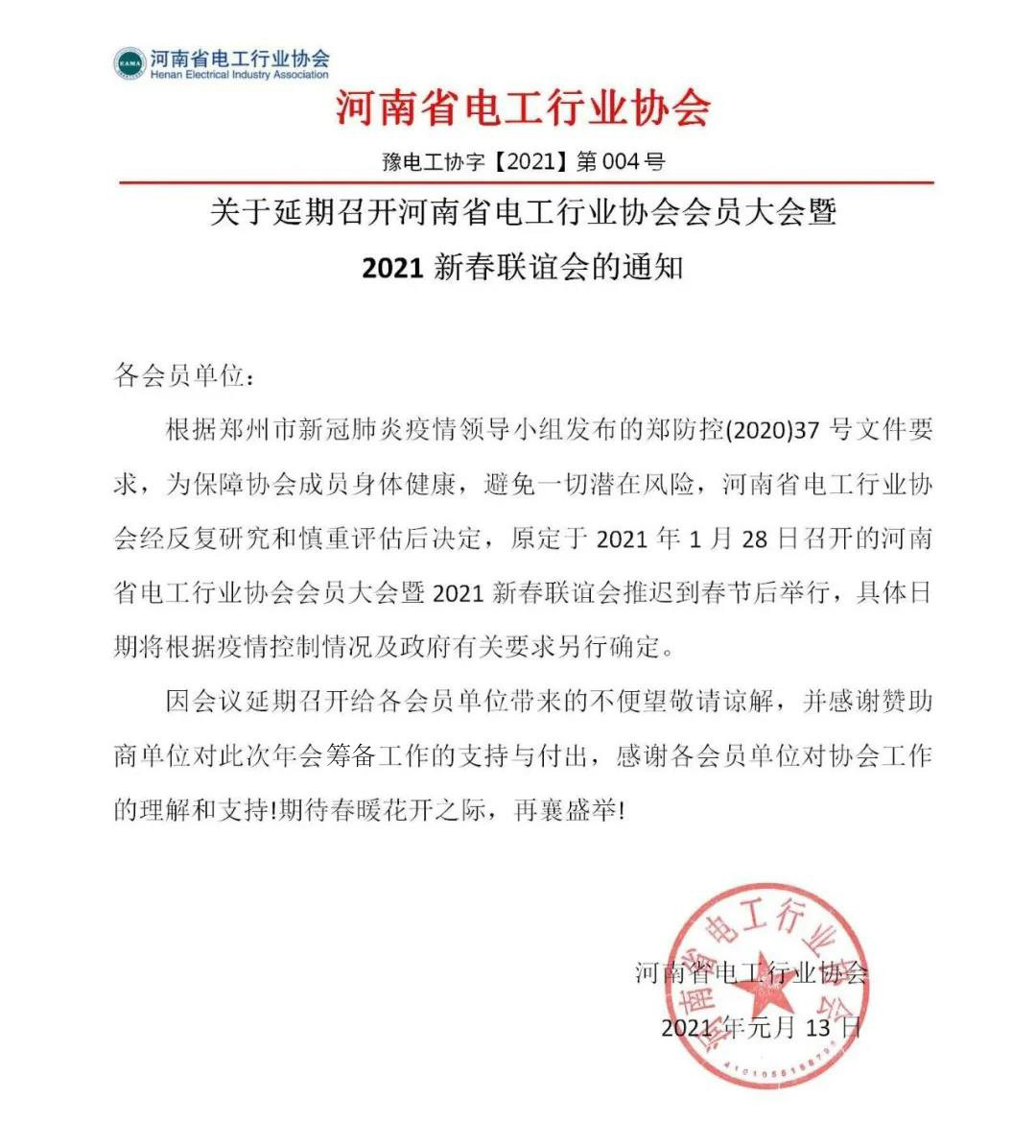 【通知】关于延期召开伟德国际1946官方网站会员大会暨2021新春联谊会的通知
